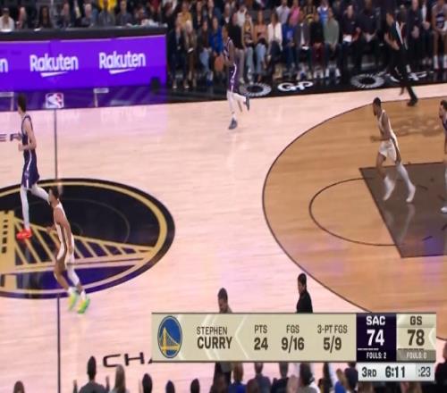 屁股老疼了!库里硬拔三分摔得四脚朝天回头同一位置还能进!
