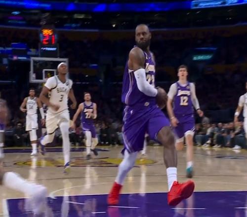 装到了!詹姆斯快攻一条龙大回环炸球过掉小波特还瞪一眼&扣篮